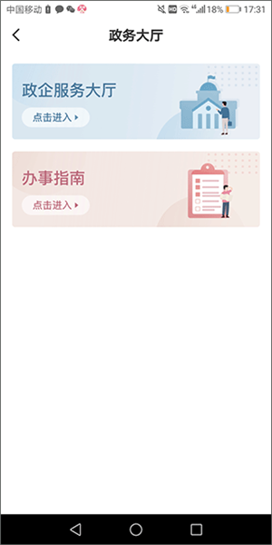 2、首页的全部功能区内设有政务大厅服务,能够有效促进政企之间的沟通与协作。
