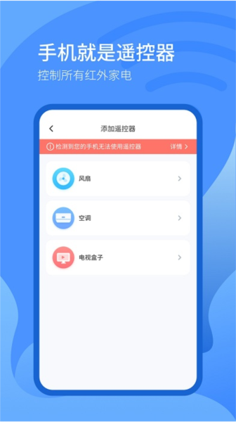 5,自主操控:直接使用手机对空调等电器进行遥控操作。