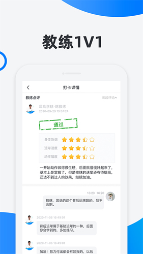 4、用户可与超过十万名篮球爱好者共同练习,按照训练计划打卡学习,并能随时获得教练的点评指导。