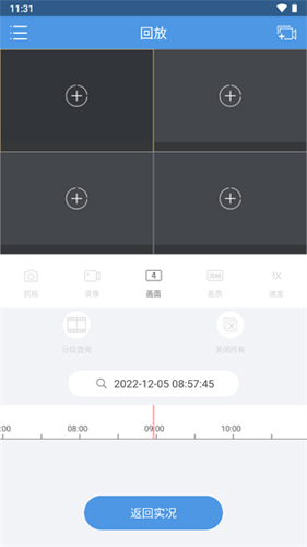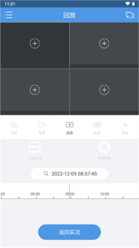 4、进入回放界面可查看所有历史监控记录,并支持按时间轴检索不同时段的画面;