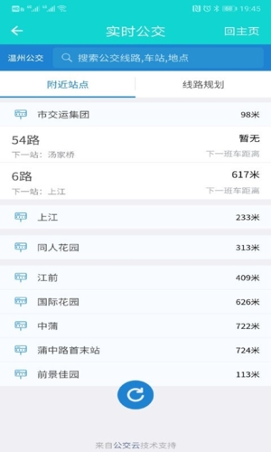 2、自动定位并展示周边公交线路,方便用户查找车站与规划换乘方案。