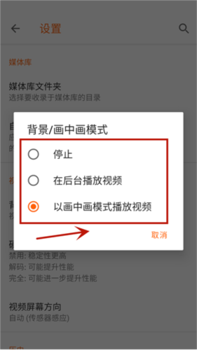 3、在弹出的对话框中即可选择开启或关闭画中画模式。