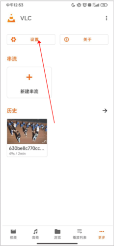 1、安装并打开VLC播放器最新版本,进入“更多”页面,点击设置选项。