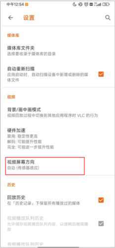 2、在设置界面中找到“视频屏幕方向”并点击进入。