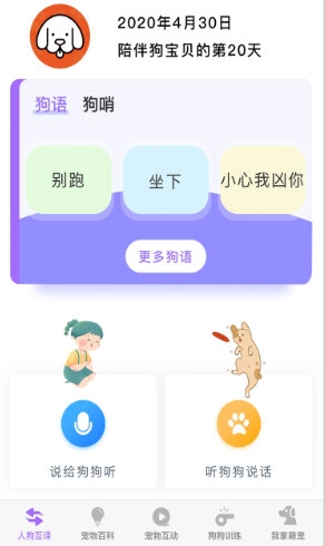 2、预设多种狗语对话场景,帮助理解宠物具体需求;