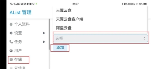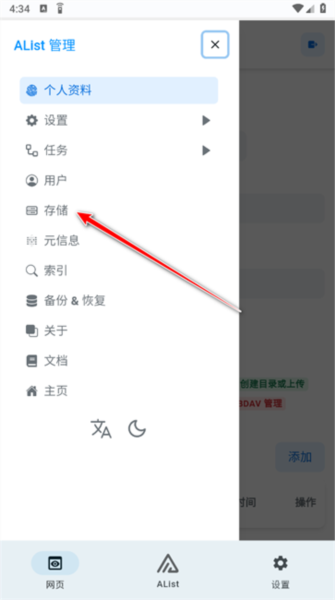 1. 登录Alist后,在【管理】界面找到【存储】;
