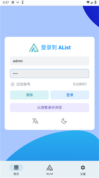 5. 输入刚才设置的admin账号和密码,然后点击登录。