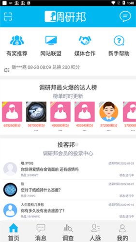 调研邦app由上海派诺市场调查咨询有限公司研发,是一款便捷的市场调研工具。用户可以在软件中找到与自身情况匹配的调查问卷进行填写,完成即可累积积分。这些积分达到一定数量后,便能兑换多种实物或虚拟奖励。应用内还设有互动社区,方便用户交流分享,参与话题讨论,为日常增添趣味。