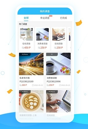 平台每日上线大量新调查,用户可根据个人当前状况,选择适合的问卷进行作答。