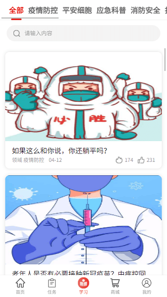 【平安学习】浏览平安知识资料,参与安全挑战答题活动。