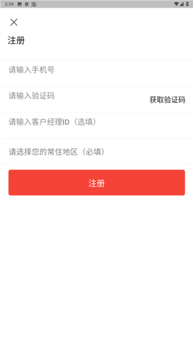 3、在注册页面输入手机号与验证码,点击注册按钮;