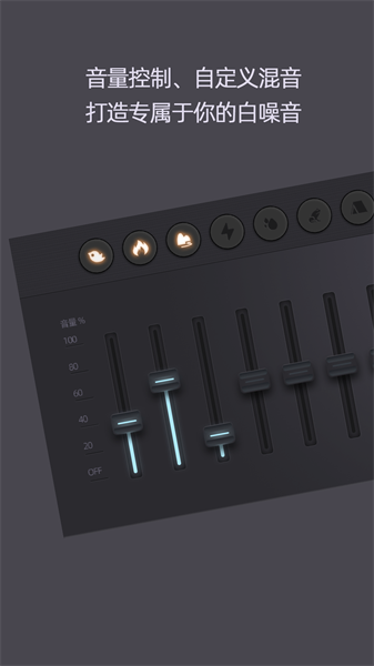 1、自由混音,创造个性空间:通过灵活的混音功能,你可以随意叠加不同音效,设计出独一无二的白噪音组合,完全掌控自己的声音环境。