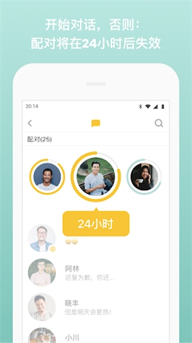 它改变了传统社交规则:在异性匹配中,女性需在24小时内发起对话,男性则需在24小时内回复;同性匹配中,双方均可主动发起对话,另一方也需在时限内回应,否则匹配将失效。这种方式鼓励会员主动迈出第一步,至今已促成数十亿条消息的发送。