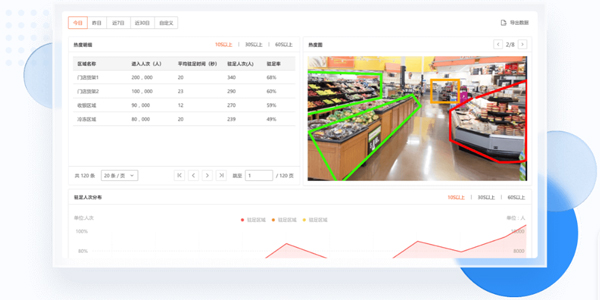 热度图直观展示:依据区域进入人次、驻足人数与时长生成热区分析,以热度图直观呈现区域人流密度;