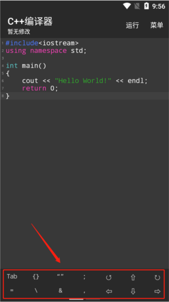 4. 屏幕正下方提供了一些常用代码符号,便于快速输入。