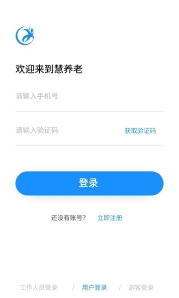 1、下载安装慧养老APP,使用手机号与验证码即可快速登录;