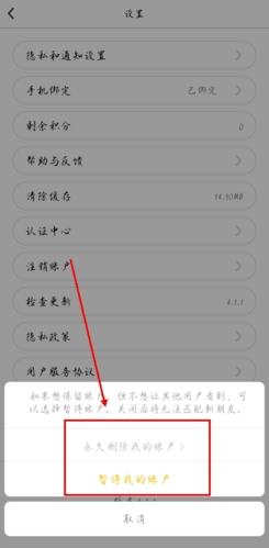2、随后会出现两个选择:【永久删除我的账户】与【暂停我的账户】;用户根据自身情况进入相应流程,并跟随系统指引完成后续步骤即可。