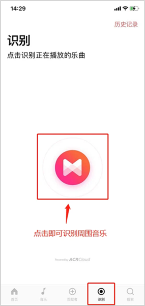 2、听歌识曲:进入识别界面,点击中央按钮,应用便会开始捕捉并识别周围播放的音乐。