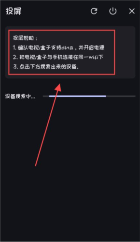 4、使用投屏需确保手机与接收设备处于同一无线网络,搜索到设备后连接即可播放。