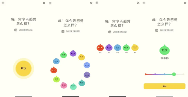 3、通过按压选择心情,长按表情会逐渐放大并伴有震动反馈,每日按压如同释放压力;