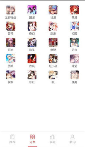 4、分类方式多样,搜索功能智能;分类按题材、精选和作者三种维度进行,个性化推荐满足不同口味;智能搜索引擎配合海量关键词引导,不让优质漫画从指尖溜走。