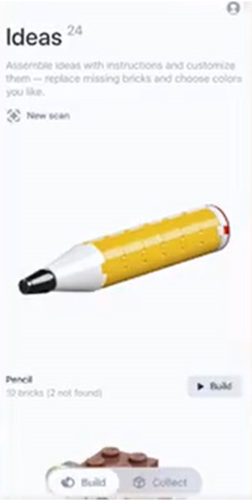 3、其核心的摄像头扫描功能可自动识别散乱积木并生成拼搭建议图像,极大提升了零件寻找与模型构思的效率;
