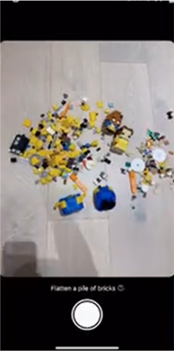 第一步、将积木摊开并用应用扫描,系统会自动识别零件并计算生成可建造的创意方案;