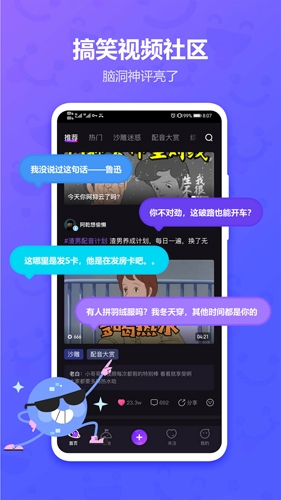 这里集合了搞笑配音、无厘头动画、情景短剧、互动视频、综艺精彩片段以及趣味解说等多种内容;各类好玩有趣的视频都能找到,帮你赶走低落,放大快乐。