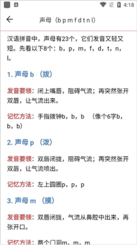 4、打开易错点中的声母学习,可依据提示的发音要领与记忆方法,重点复习易错部分。