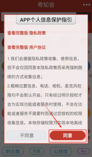 1、点击同意按钮进入应用界面,开启粤语学习之旅。