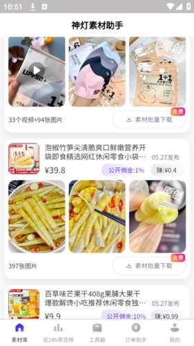 神灯素材助手最新版整合了多种类型的创作资源,用户可以通过这款手机应用获取大量文案与多媒体素材。它支持批量下载操作,流程简单快捷,平台上多数素材均可免费使用。该应用还包含丰富的图片与视频资源,能够满足不同的下载需要。用户可以在线查找所需内容,直接保存无水印文件,也能轻松将素材分享给好友。