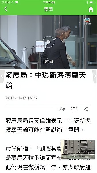 3、配合快速上线的采访视频片段,多数配有粤语旁白,部分新闻还可选择普通话旁白,助你紧跟社会动态;