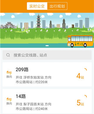 2、附近线路:精准查找当前位置附近的公交线路,可自由切换并选择乘车站点;