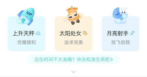 在创建账号时已填写个人出生信息;查看上升星座可点击首页“测自我”板块;页面顶部会直接显示上升星座结果。