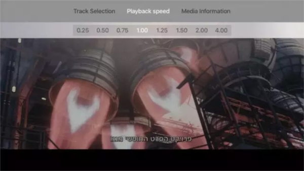 除了基础播放,软件还支持章节导航、多声道音频、外挂字幕以及播放速度调节等高级功能;据开发方介绍,播放速度调节是当时Apple TV平台上独有的特性。