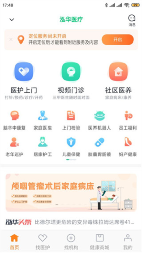 泓华医疗是泓华国际医疗控股有限公司推出的专业上门医疗服务平台,拥有正规医疗机构执业资质,致力于提供符合国际标准的医护到家服务。用户可通过该软件随时预约专家门诊或护士上门护理,其核心业务包括线下连锁医院诊所、医护上门与送药服务以及智能医疗健康SaaS平台。