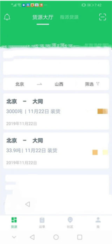 4.完成两地设置后,系统会显示该线路上的所有可用货源;司机可浏览并选择感兴趣的订单进入查看。