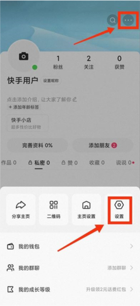 1、首先进入个人主页,点击右上角的【···】图标,然后选择【设置】选项。