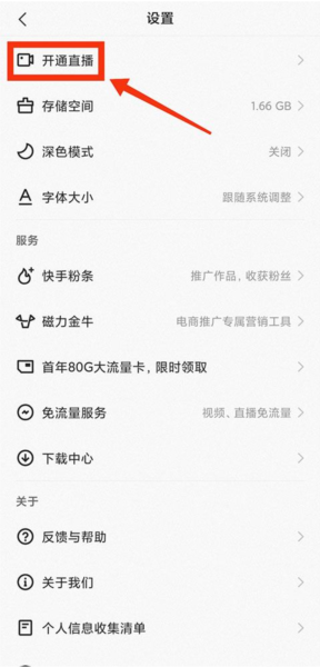 2、在设置菜单中找到【开通直播】功能,按照提示申请直播权限。