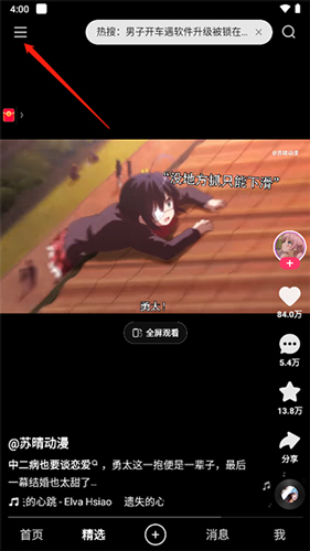 1、打开应用后,在首页左上角找到【三】形按钮并点击。