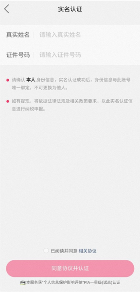 3、如实填写个人身份信息,勾选同意相关协议,并完成实名认证步骤。