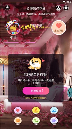 1、平台提供快速的陌生人匹配机制,进入后即可开启聊天交友空间;