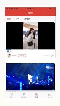 视频板块提供最新短视频、MV及演唱会录像等内容,支持点赞、收藏与关注视频发布者。