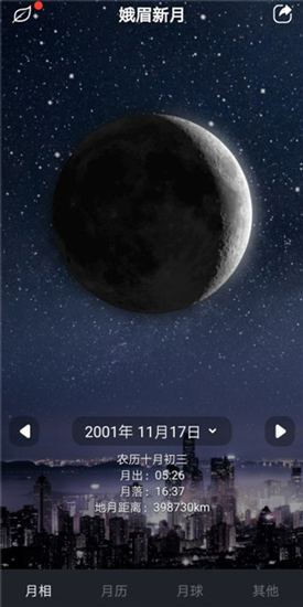 【每日月相】想知道每一天月亮的形态吗?只需切换日期就能看到。从月出月没时间到地月实际距离,从方位角到对应农历日期,甚至包含富有诗意的月相名称;精美月亮图片支持一键保存。