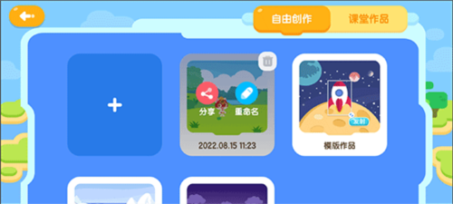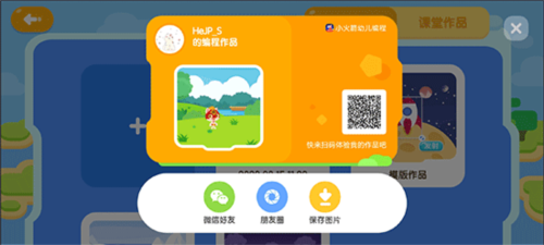 1、登录小火箭编程应用后,长按需要分享的作品封面,界面会出现分享图标。