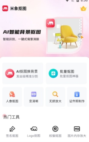 米象抠图app是一款专注于图像处理的工具,凭借其强大的智能抠图能力,帮助用户轻松应对各类复杂的图片编辑任务。该应用集成了丰富的编辑功能与先进的图像处理技术,例如智能背景移除与画质修复,无论是普通用户还是专业设计者,都能借助它获得便捷高效的操作体验,让每一张照片都能展现出最佳效果。这款应用是您实现高质量图片编辑的理想伙伴。