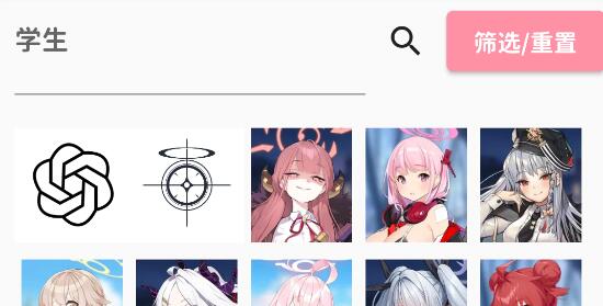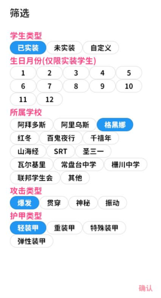 软件提供学生类型、学院、攻击类型、防御类型等四种筛选维度;
