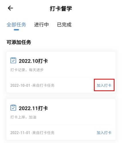 2、在打卡督学页面根据时间选择打卡队伍,点击加入打卡按钮;