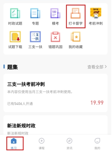 1、在练习页面点击打卡督学按钮;
