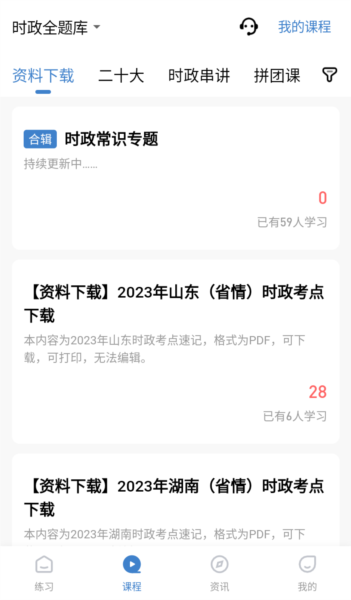 目前已上线“时政思维-全国时政重点解读”、“山东时政专项预测”、“山西时政专项预测”等课程。
